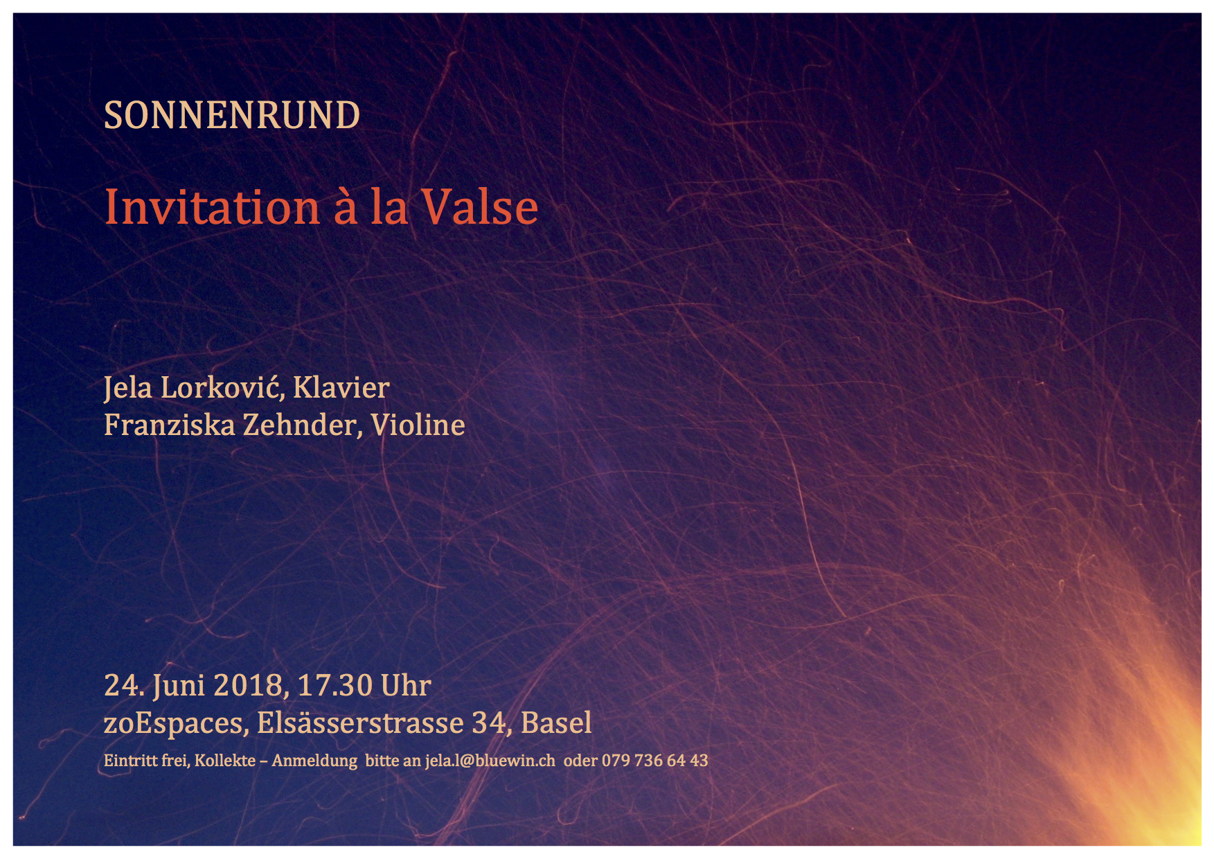 Zum Abschluss begeben wir uns mit dem 4. Satz aus der Sonate von César Franck auf eine andere Ebene. Hier eröffnet sich eine andere Perspektive auf den sommerlichen Höhepunkt des Jahres. Die einander nachfolgenden Stimmen der Violine und des Klaviers verbinden sich wie ein Paar, das sich zusammen bewegt in einem heiteren, liebevollen Tanz, der sich bis zu ekstatischen Höhenflügen steigert.